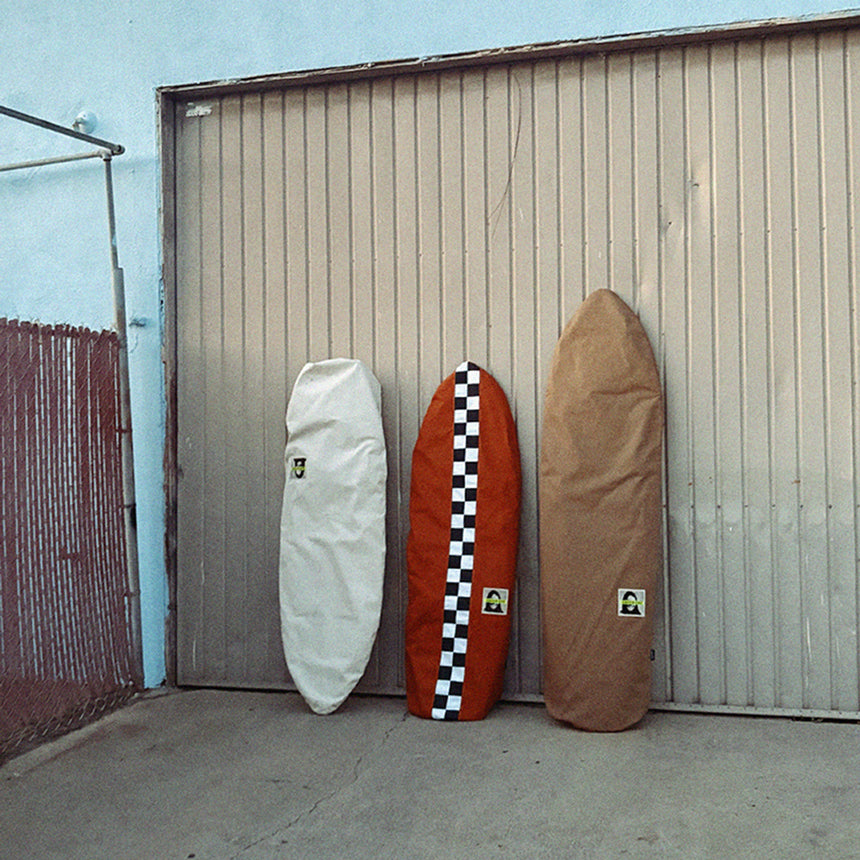 Green Fuz Canvas Board Bags are made with premium cotton canvas that keeps your board protected, while offering a friendly feel. We line the deck of the bag with water repellent nylon cloth, this prevents wax from absorbing into your bag. Think of your Green Fuz bag as a functional board sock. Handmade in California.